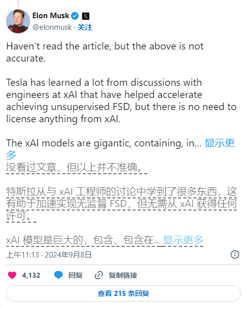 特斯拉CEO埃隆·马斯克近日驳斥了《华尔街日报》关于特斯拉与人工智能初创公司xAI讨论收入分享的报道。该报道称,根据向投资者描述的协议,特斯拉将在其全自动驾驶(FSD)软件中使用xAI模型,并由xAI…