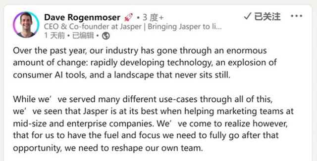 当人们还在感叹AI初创企业强大的吸金能力、高薪挖角的“壕气”之时,首批AI独角兽之一的Jasper已经宣布了裁员消息。该公司成立于2021年,在成立仅18个月后(2022年10月)就达到了15亿美元的…
