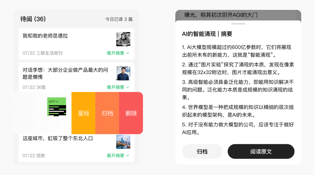 同步收藏至APP的内容,将自动存放于待阅清单,更有每日阅读成就统计,形成主动清理心智,一定程度上减少信息囤积吃灰
