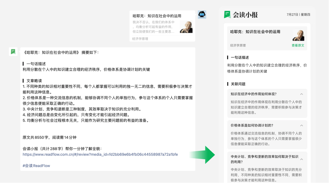 转发给「会读收藏助手」的文章内容,小助手将会自动生成内容摘要,并实时推送给你,帮你快速获取文章概要,目前支持大部分主流媒体文章内容(公众号/知乎/小红书/即刻/今日头条/虎嗅/36Kr/少数派/雪球…)